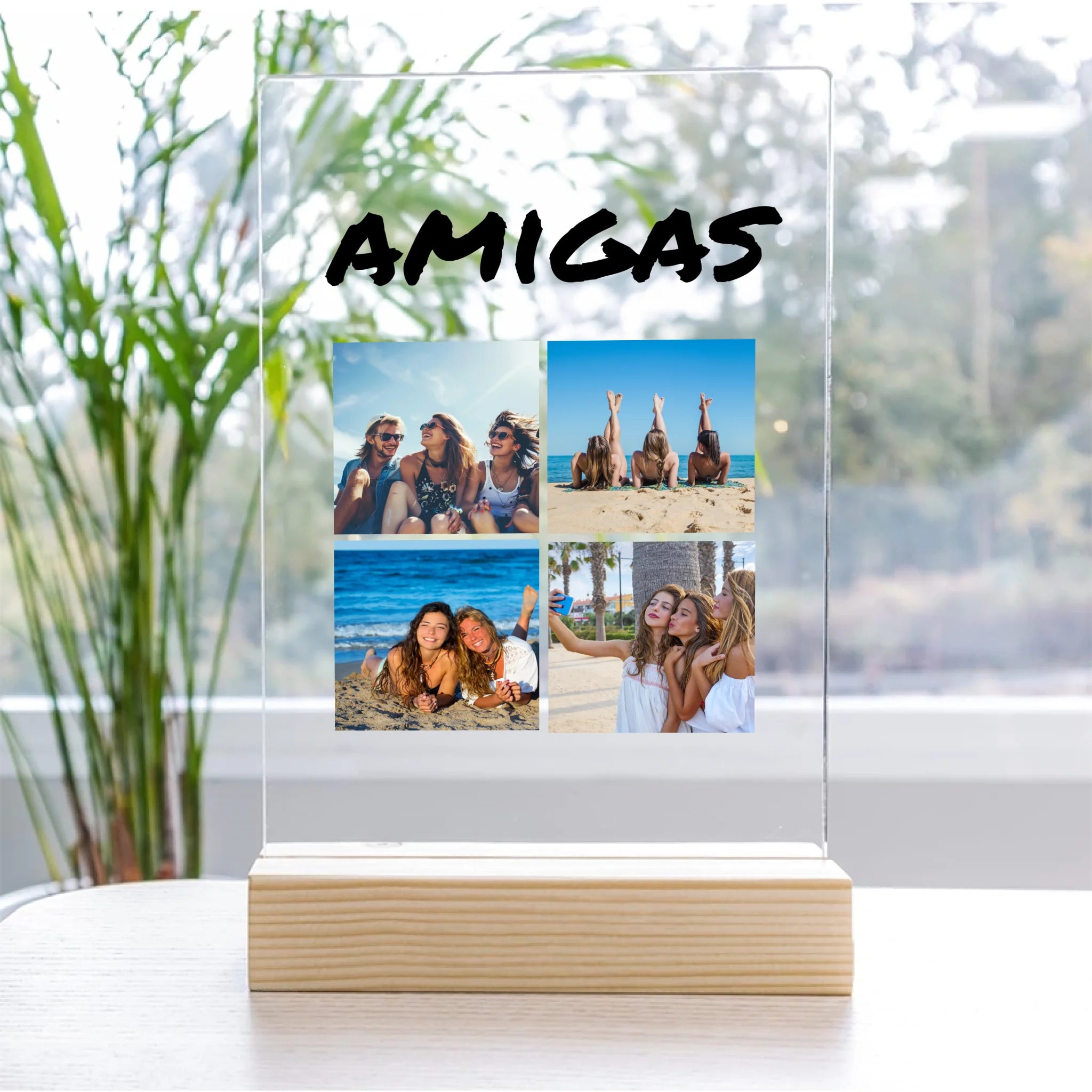 Placa de metacrilato transparente - 3mm de grosor - Medidas de la placa: 15x22cm - Incluye base de madera - Se monta fácilmente encajando la placa sobre la ranura de la base - Para un mejor transporte, se sirve desmontada - Se imprime directamente sobre la placa de metacrilato