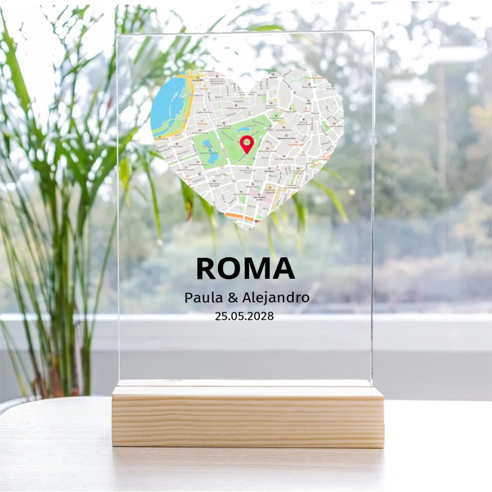 Placa de metacrilato transparente - 3mm de grosor - Medidas de la placa: 15x22cm - Incluye base de madera - Se monta fácilmente encajando la placa sobre la ranura de la base - Para un mejor transporte, se sirve desmontada - Se imprime directamente sobre la placa de metacrilato