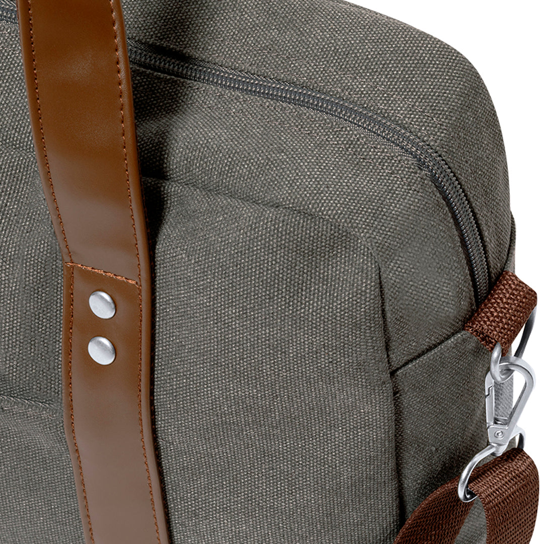 Este maletín destaca por su diseño atemporal en un elegante color gris, fácil de combinar y perfecto para cualquier entorno profesional. Está confeccionado en resistente lona canvas de 475 g/m², un material conocido por su increíble durabilidad. Los detalles y cintas en polipiel de alta calidad añaden un toque de distinción que eleva su estética.