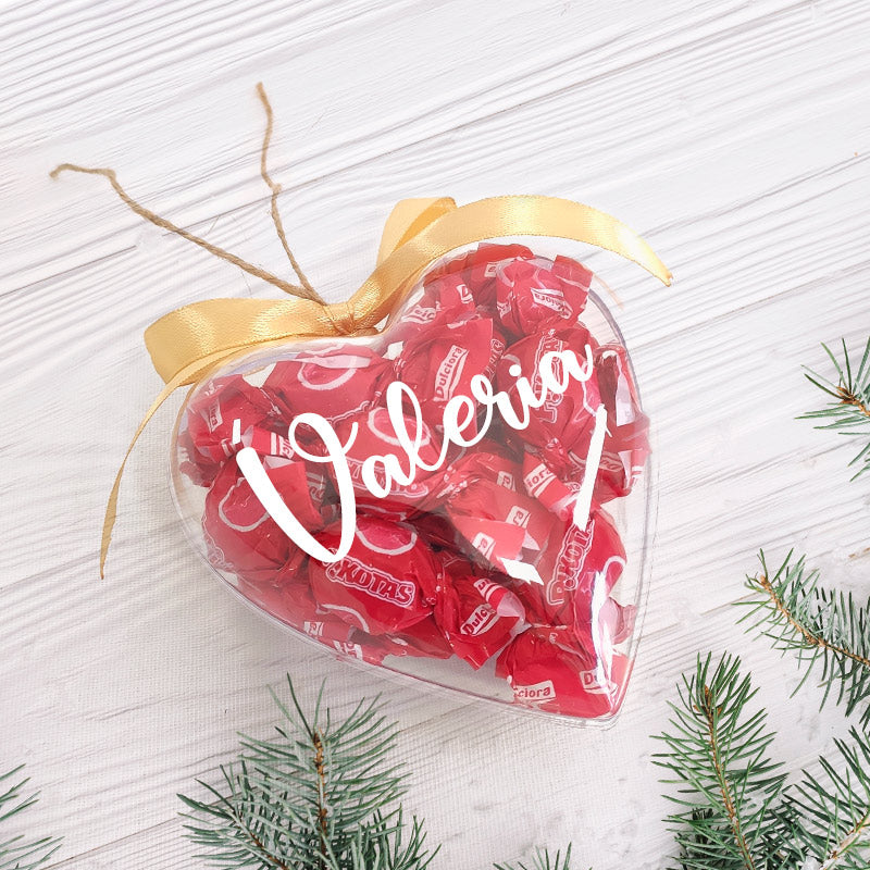Bola de Navidad en Forma de Corazón Personalizada: Un Dulce Detalle con Caramelos Pikota