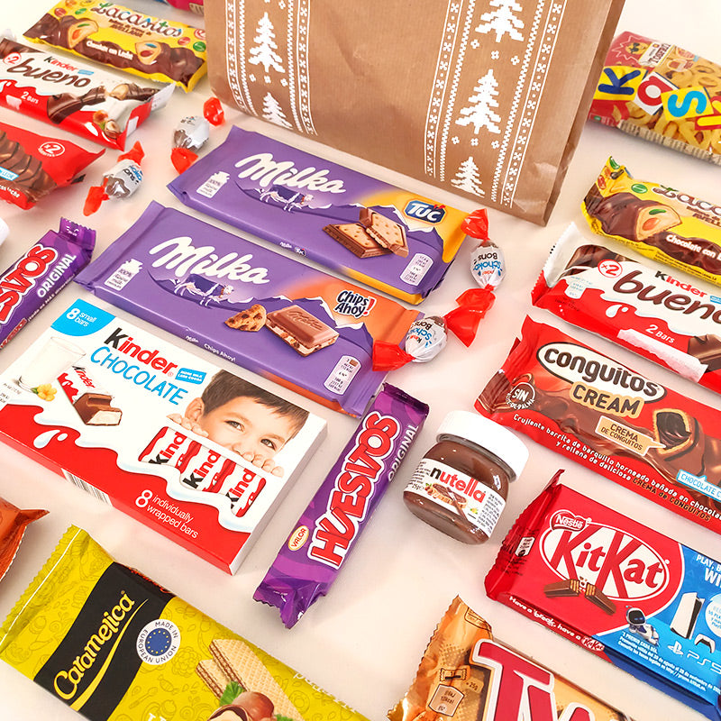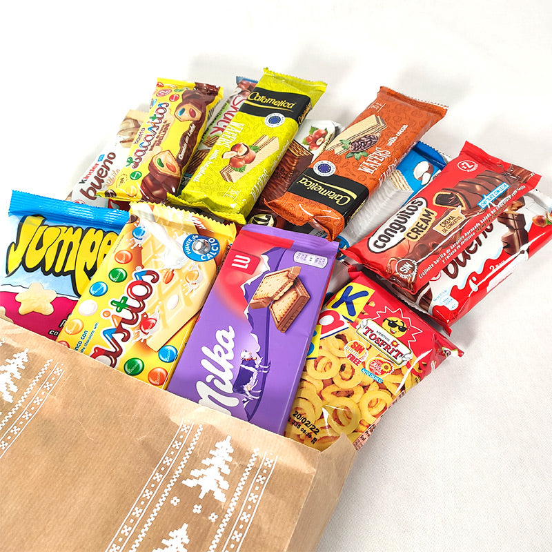 Sorprende estas Navidades con esta encantadora bolsa kraft con estampado navideño. Dentro encontrarás una selección irresistible de chocolatinas y gominolas, perfecta para endulzar las fiestas de alguien especial.